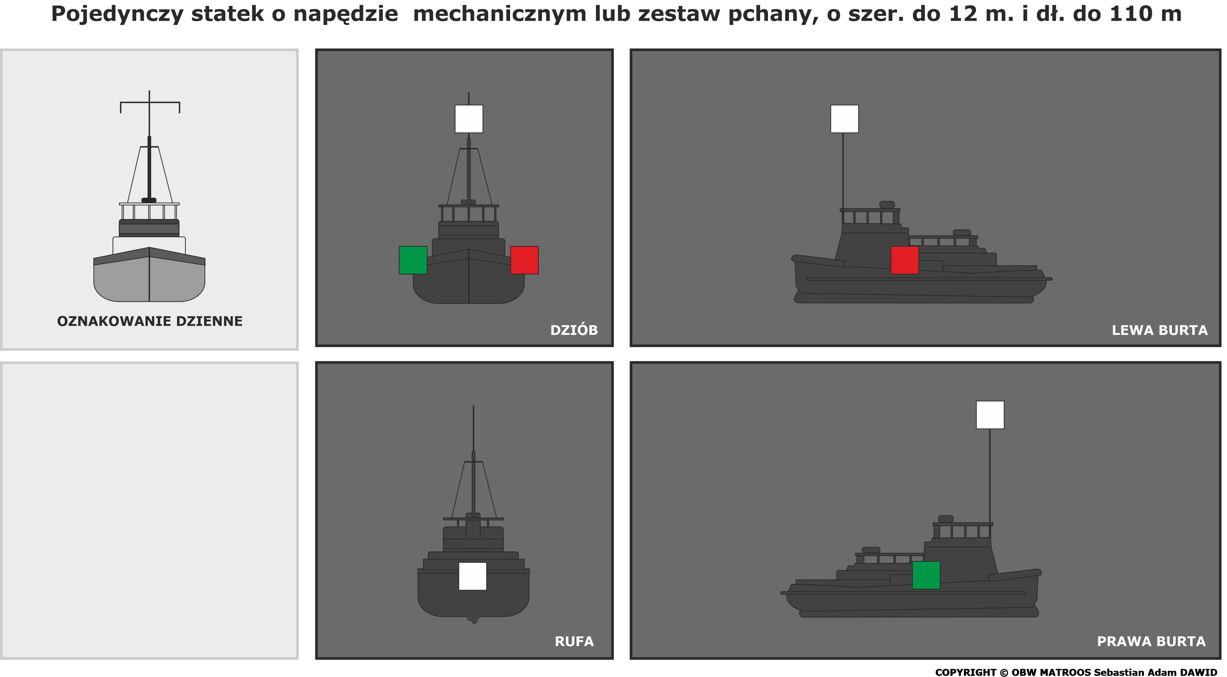 - dwa światła masztowe 225° umieszczone na różnych poziomach.
